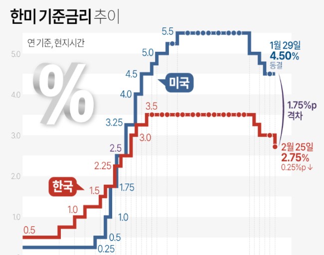 미국과의 금리차가 1.5%에서 1.75% 확대되었고,